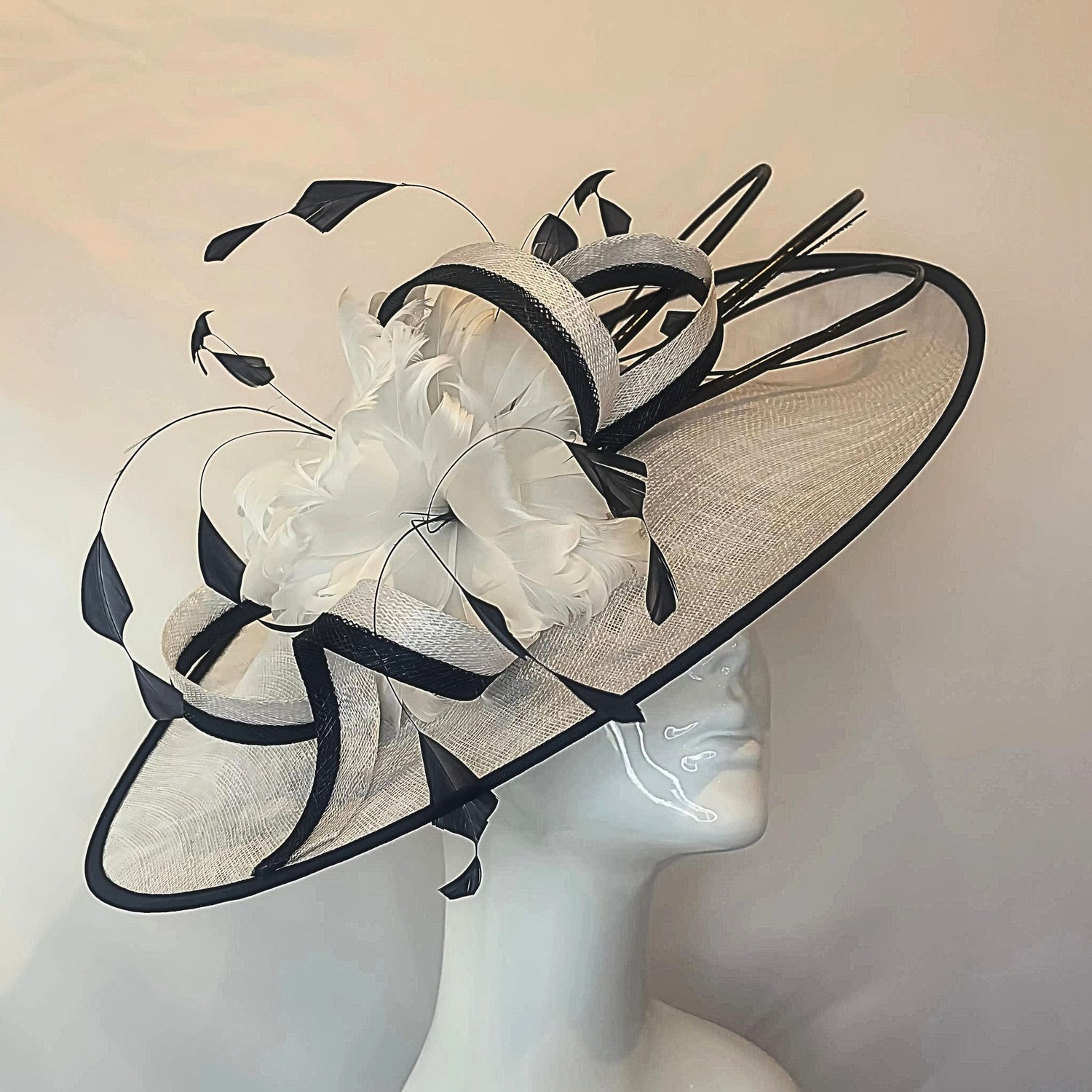 Black Disc with Ivory Feather Spray Style 110
